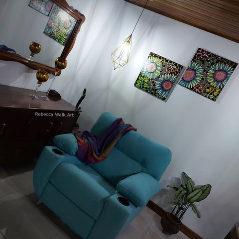 "As a curator of exhibitions, as well as an artist, I have deep respect for the art of Rebecca Walk. There is a sensitivity and honesty within the colorful compositions of Ms Walk’s paintings that echoes first, freedom, then order. This is what catches my eye immediately.