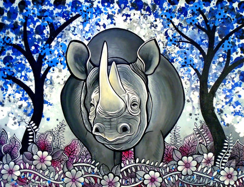 "Buildings are married with colorfully illustrated living objects- birds, cats, flowers, vines and leaves, lyrically dancing across the field of vision, sometimes escaping the confines of the canvas itself, continuing the composition upon the wall.